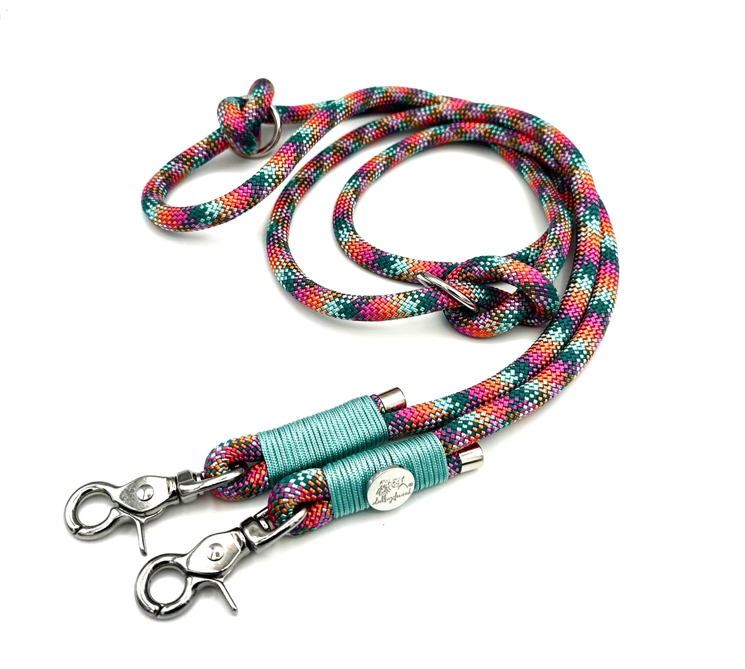 Unsere handgefertigte 2-Meter-Tauleine vereint Funktionalität, Stil und Qualität. Mit einer Länge von 2 Metern und dreifacher Verstellbarkeit passt sich die Leine flexibel Ihren Bedürfnissen an – ob beim Spaziergang, Training oder im Alltag. Die durchdachten Ringe sind so konzipiert, dass sie über die Karabiner passen und bei Bedarf abgenommen werden können. So entsteht ein individuelles Design mit optimalem Komfort.